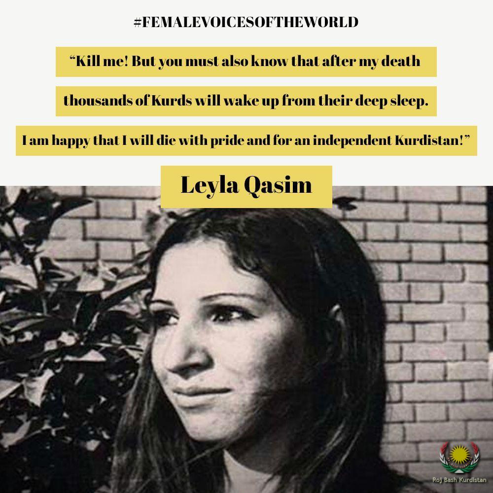 LEYLA QASIM During a period in history when society was not acceptant toward women entering the political arena Leyla Qasim dared to play an active role not just in politics but in Kurdish politics. Leyla Qasim, was born in 1952 to her father Dalaho Qasim and her mother Kani in the Kurdish city of Xaneqin to a very patriotic family. Leyla was one of five children and the only girl in the family.