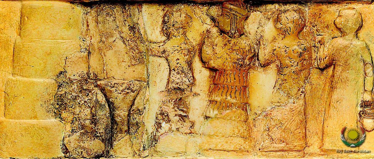 This ancient Mesopotamian disk shows Enheduanna (second from left) in what is likely a religious procession. Courtesy Penn Museum