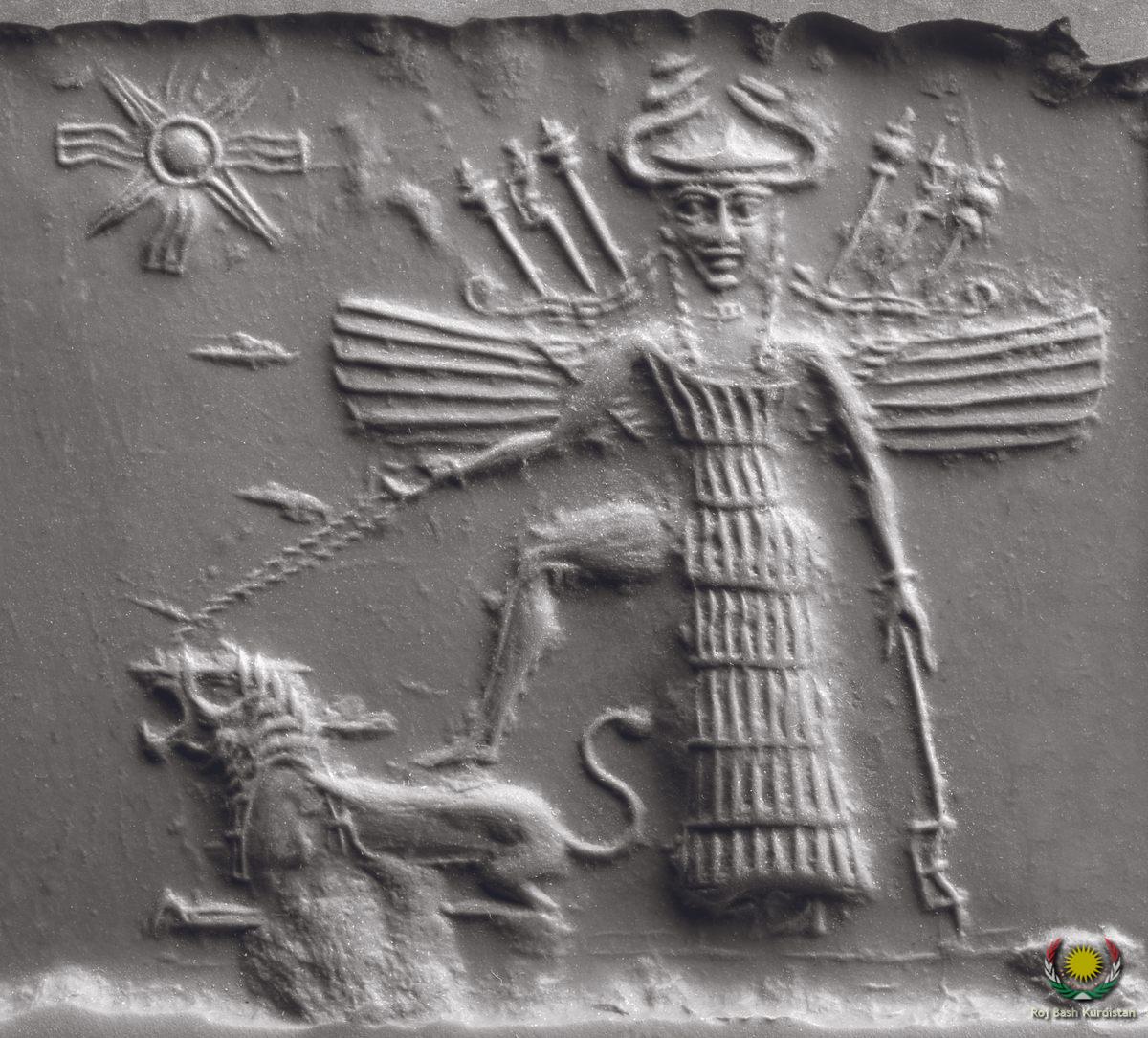 This seal depicts Ishtar, the powerful Akkadian war goddess who Enheduanna merged with the Sumerian fertility goddess Inanna. Courtesy Oriental Institute of the University of Chicago