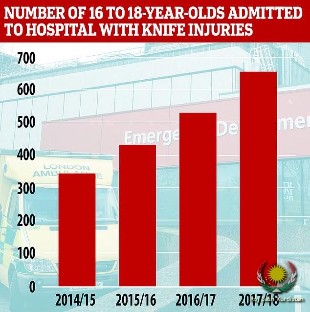 Two children are stabbed in Britain EVERY DAY as number of under-18s admitted to hospital with stab wounds soars by 80 per cent in three years