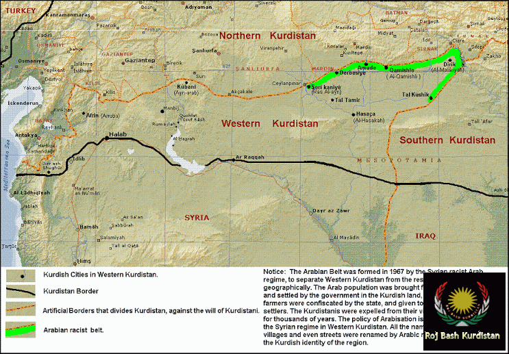A great many people are unaware of just how much land to the north of Syria is actually ocupied by Kurds - partly due to the fact that many Kurds living away from the Turkish/Syrian border only speak Arabic and are classed as Sryian Arabs by the Syrian regime :(