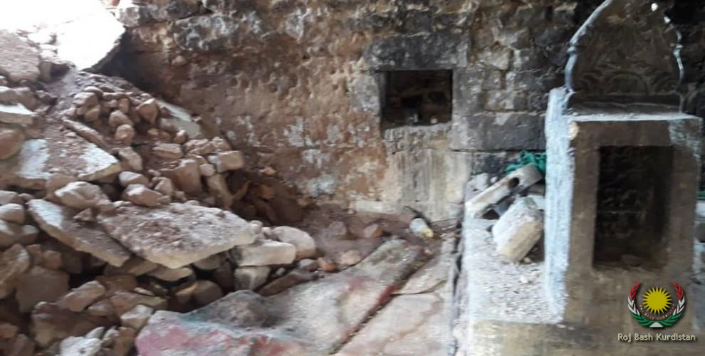 The Sheikh Berekat tomb in Ayn Dara, the Qere Cirne Tomb in Meydanke village and the Sheikh Adî Tomb in Qibar village, sacred sites for Yazidis, are among the historical structures destroyed during and after the occupation attacks of the Turkish state against Afrin.